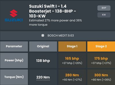 Stage 1 ECU CUSTOM – Suzuki Swift Sport ZC33S (1.4 Turbo)